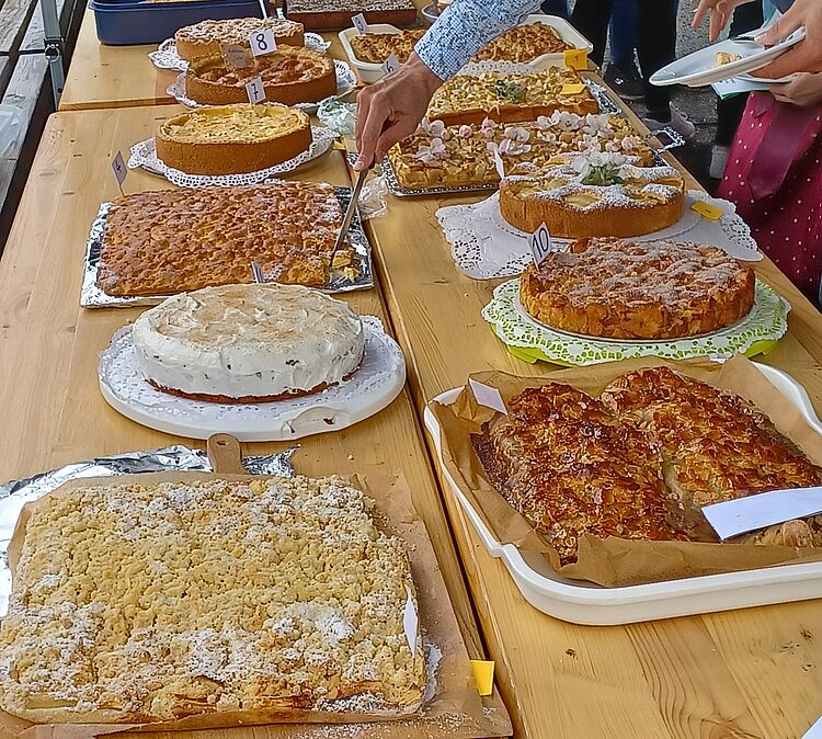 Ein weiterer Höhepunkt des Tages war der Apfelkuchenwettbewerb, bei dem die drei besten Apfelkuchen prämiert wurden. Frau Renate Hildmann überzeugte mit ihrem Kuchen die Jury und erhielt als ersten Preis einen hochstämmigen Apfelbaum. Über einen halbstämmigen Apfelbaum sowie eine Gartenschere durften sich Frau Rosika Englert und Frau Edith Hüttner freuen.